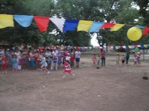 Мероприятие началось со сказочного путешествия с цветиком - семи цветиком. Детей развлекали различные сказочные персонажи: Клоун, Водяной, Баба-Яга, Гном, Кот Базилио и Лиса Алиса. Они проводили с ними различные игры. Участники хореографического ансамбля «Звездочка» порадовали всех присутствующих танцами «Утята» и «Рокн-Ролл». Заведующая библиотекой провела конкурсы загадок, стихов, рисунков на асфальте. За лучшие ответы, стихи и рисунки дети получили призы. В конце мероприятия каждому ребенку подарил Гномик кусочек праздника в виде разноцветных шариков. Дети долго веселились на празднике, на детской дискотеке.
