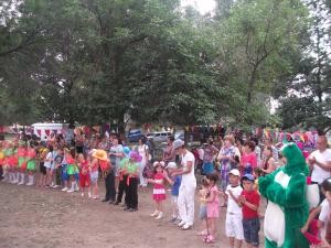 Мероприятие проходило в парке, детвору встречали ростовые куклы – Дракон и Чебурашка. Были организованы детские аттракционы, продавались сладости, шашлыки.
