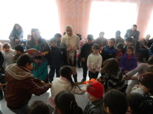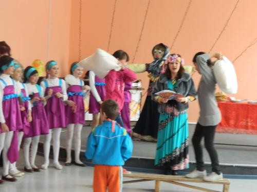 Ведущей праздника была заведующая библиотекой Лукашенко Л.А., в роли Масленицы выступила художественный руководитель Кусаманова З.З. Она познакомила детей с народными традициями, обрядами масленичной недели. Рассказала о праздновании каждого дня, что означали и как праздновали дни недели.