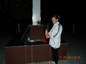 В этот день по всей России проходят различные мероприятия, посвященные этому трагическому событию. Благодарные потомки приходят к братским захоронениям, чтобы отдать дань памяти не вернувшимся с полей сражений, сказать слова благодарности ныне живущим ветеранам войны. Одно из таких мероприятий носит название «Свеча памяти». 22 июня ровно в 4 часа утра люди приходят к мемориалам и зажигают свечи, говорят тихие, но проникновенные слова о тех минувших событиях, о тех людях, кто лицом к лицу первым встретился с врагом. Второй год такое мероприятие проходит у нас в селе. У обелиска погибшим жителям села в Великой Отечественной войне собрались старшее поколение и молодежь.