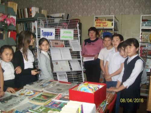 Терроризм и экстремизм - это исключительно большая опасность, способная расшатать любое, даже самое стабильное и благополучное, общество. Одним из ключевых направлений борьбы с террористическими и экстремистскими проявлениями в общественной среде выступает их профилактика. Особенно важно проведение такой профилактической работы в среде подрастающего поколения. 8 апреля 2016 года в Бирюковской сельской библиотеке был проведен урок нравственности «Терроризм – угроза обществу» с учащимися 6 класса МБОУ «Бирюковская СОШ». Лукашенко Любовь оформила уголок по профилактике терроризма, на котором были помещены материалы по истории террора и проблемам борьбы с терроризмом в современном обществе: 1.Федеральный закон от 06.03.2006 N 35-ФЗ